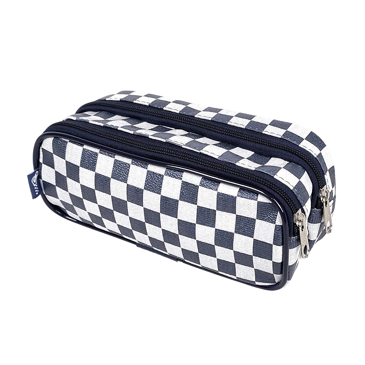 Estojo Escolar Duplo Azul Marinho Quadriculado